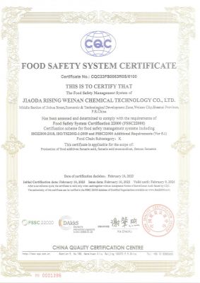 公司通過了ISO9001:2015、HACCP認證和FSSC22000等質量安全管理體系認證。